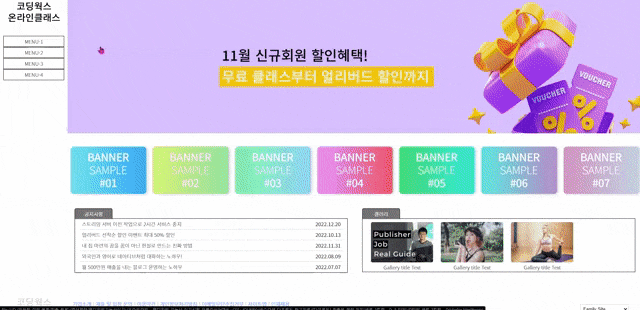 코딩웍스 강의는 제이쿼리 제작 뿐만 아니라 순수 CSS로 슬라이드 완벽하게 구현