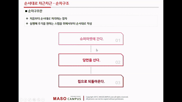 프로그래밍에서 가장 기초가 되는 순차구조, 조건구조, 반복구조 학습