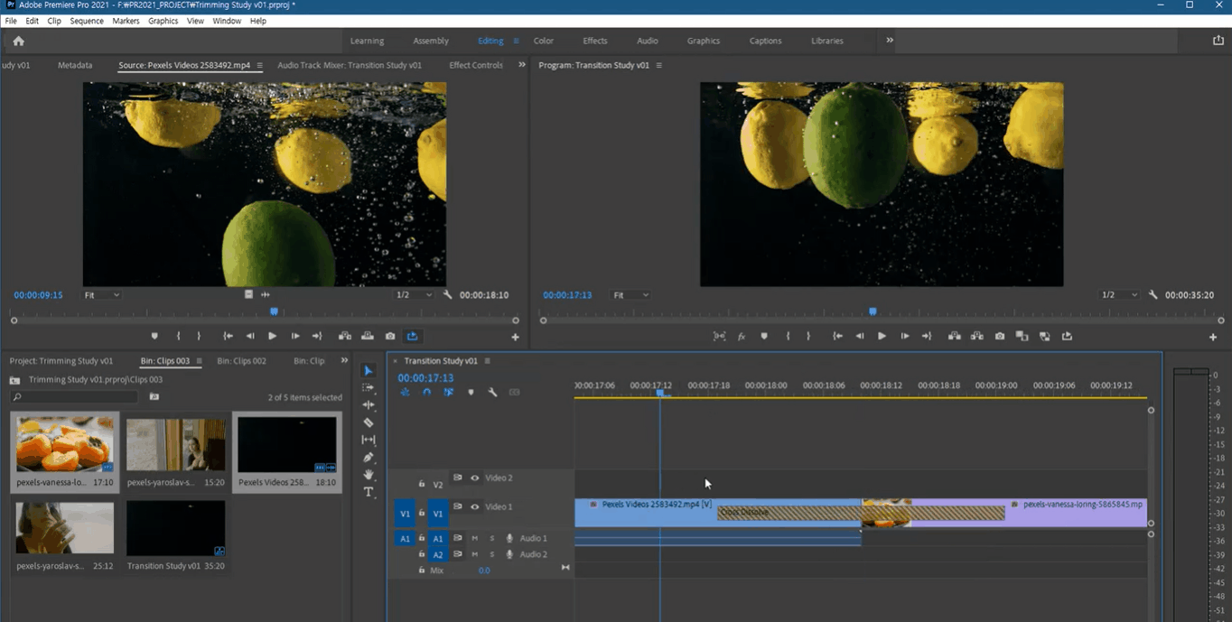 컷 편집, 트랜지션, 트랜스폼과 키 프레임 기능 학습