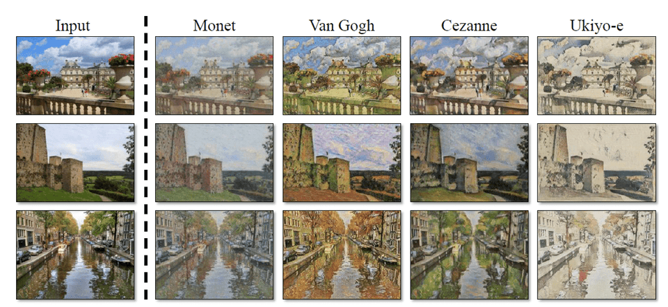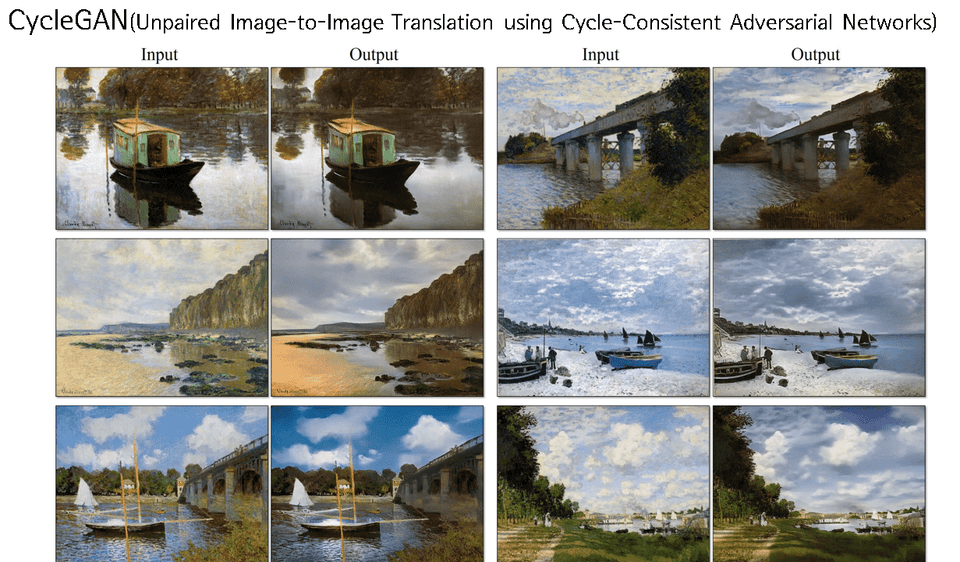 이렇게 이미지의 두 도메인을 서로 바꿔버리는 GAN모델이 CycleGAN입니다. 이 CycleGAN은 Style transfer를 활용하는 GAN의 기본 base line model이 되었습니다.
