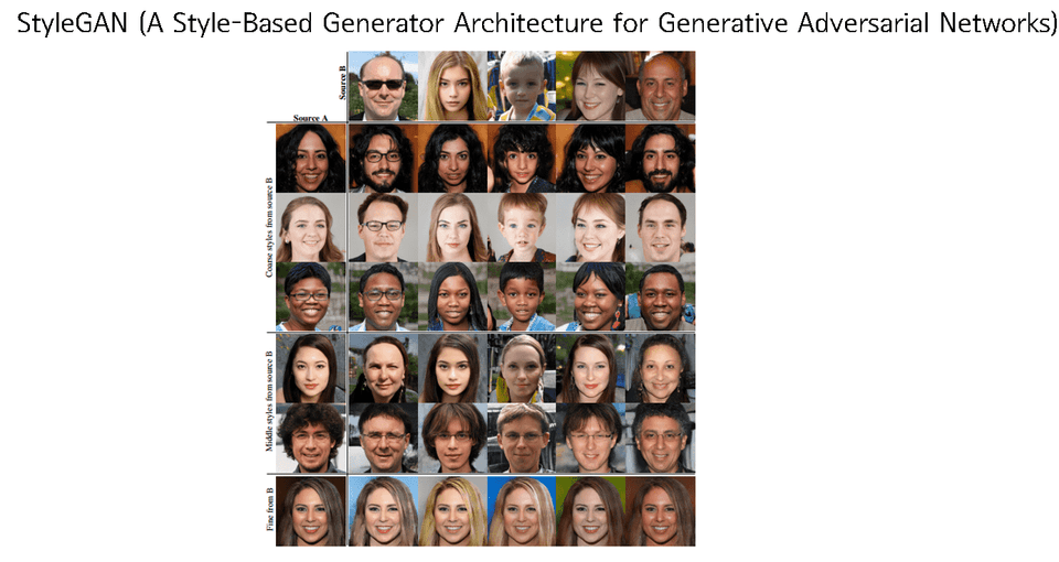 아래 그림은 1년전 기준 가장 성능이 좋은 GAN이 만들어낸 이 세상에 실제로 존재하지 않는 가짜 이미지입니다. 현재에는 이보다 발전된 모델이 나왔습니다.