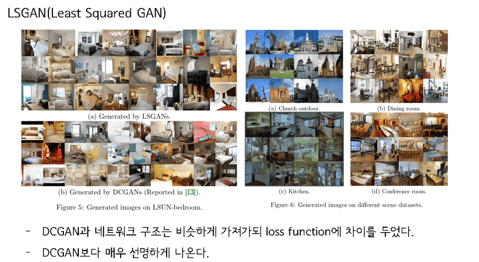 아래 사진은 DCGAN과 LSGAN의 성능 비교 사진입니다.
