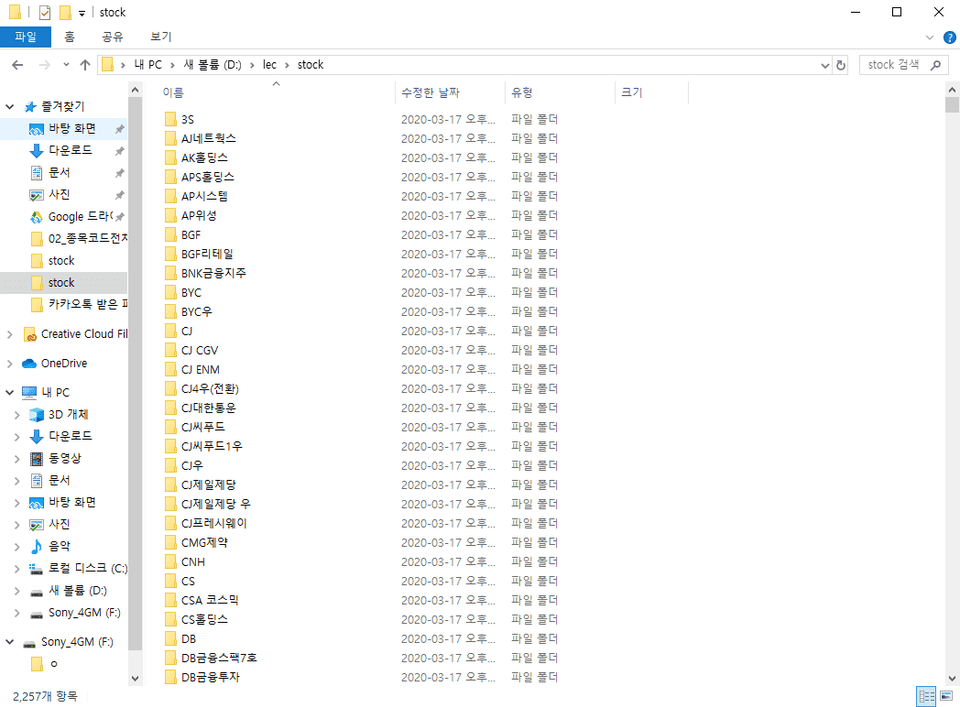종목별 주식 일별 데이터를 수집한 후, 각 종목별 폴더를 생성 후 각각의 폴더 안에 저장합니다.